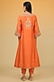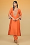 Orange Silk Chanderi Hand Embroidered A-Line Kurta Set For Girls