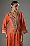 Featuring an orange kurta for girls in upada silk base with gota, sequins and pearl detailing, including bandhej print and kashmiri tilla embroidery. It is paired with a salwar. Style it with cute hair accessories and sandals for a festive occasion or pooja ceremony.