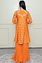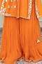 Featuring a pumpkin orange A-line kurta for girls in silk chanderi base with kashmiri tilla, pearls, and gota embroidery. It is paired with matching georgette gharara pants and a scarlet red silk organza dupatta.