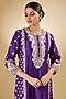 Purple Pure Silk Chanderi Tilla Embroidered Kurta Set For Girls