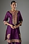 Purple Silk Chanderi Kashmiri Tilla Embroidered Kurta Set For Girls