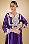 Purple Silk Chanderi Parsi Gara Embroidered Kurta Set For Girls