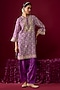 Purple Upada Silk Tilla Embroidered Kurta Set For Girls
