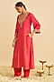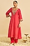 Red Pure Upada Silk Aari Embroidered Kaftan Set For Girls