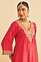 Featuring a red A-line kaftan for girls in pure upada silk base with a deep V-neckline, bell sleeves, aari, gota, and tilla embroidery. It is paired with a dogri salwar. Style it with cute hair accessories and sandals for a festive occasion, pooja or wedding ceremony.