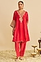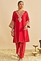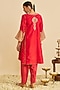 Red Pure Upada Silk Gota Embroidered Kurta Set For Girls