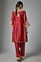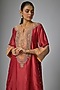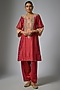 Red Silk Chanderi Kashmiri Tilla Embroidered Choga Kurta Set For Girls