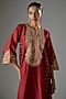 Red Silk Chanderi Kashmiri Tilla Embroidered Kurta Set For Girls