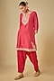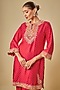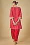 Red Upada Silk Pearl Embroidered Bandhej Short Kurta Set For Girls