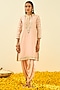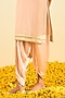 Featuring a rose pink short kurta for girls in silk chanderi base with gota patti and basra moti embroidery. It is paired with matching bemberg satin dhoti pants.