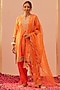 Tangerine Orange Silk Chanderi & Banarasi Embroidered Kurta Set For Girls