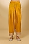 Featuring a yellow kurta for girls in pure silk chanderi base with bell sleeves, tilla, gota, and parsi gara embroidery. It is paired with a bamberg satin salwar. Style it with sandals and a matching hairband for a cute and comfortable festive look, perfect for family gatherings, festive poojas or cultural celebrations.