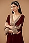 Featuring a maroon long choga kurta in silk velvet base with a V-neckline and three-quarter sleeves, including pearl, dori hand and machine embroidery. It is paired with dogri salwar pants. Style it with statement jewellery and heels for a festive occasion or pooja ceremony.