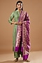 Featuring a mehendi green kurta in silk chanderi base. It is paired with matching palazzo pants and a pattan dupatta.