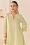 Sheetal Batra features a mint green short kurta in chanderi silk brasso base with functional pockets, mirror and aari embroidery. It is paired with glazed cotton dogri salwar with an embroidered border. Style it with statement jhumkas, a potli bag, and embellished juttis, complemented with soft waves and dewy makeup for festive celebrations or easy daytime outings.