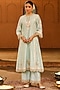 Misty Green Silk Chanderi Kashmiri Tilla Embroidered A-Line Kurta Set