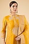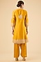 Featuring a mustard kurta in chanderi silk base with kashmiri tilla embroidery, mandarin collar and three-quarter sleeves. It is paired with bemberg satin salwar pants and a silk organza dupatta. Accentuate with statement jewellery and heels for festive or haldi ceremonies.