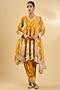 Mustard Pure Silk Organza Gota Embellished Short Kalidar Anarkali Set