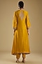 Featuring a mustard kaftan in pure upada silk base with kirani dori and pearl embroidery, including a zeron neckline and a front slit. It is paired with dogri salwar pants. Accentuate it with dangler earrings and heels for festive occasions or pooja ceremonies.