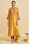 Mustard Pure Upada Silk Tilla Embroidered Kaftan Set