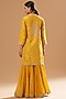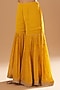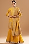 Featuring a mustard kurta in pure raw silk and banarasi chanderi silk base with tilla work embroidery. It is paired with matching gharara pants and a dupatta. Style it with statement jewellery and heels for a festive ready-look.