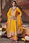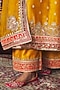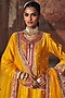 Sheetal Batra presents a mesmerizing mustard A-line kurta in silk chanderi base with pearl, sequins, kashmiri tilla and gota patti embroidery. It is paired with palazzo pants and a silk organza dupatta. Style it with kundan polki earrings, a braided hairstyle and block heels, ideal for weddings or haldi ceremonies.