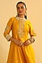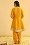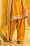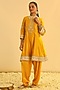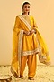 Featuring a mustard kurta in silk chanderi base with kashmiri tilla, gota, applique and kundan embroidery. It is paired with bemberg satin salwar pants and a silk organza dupatta. Accentuate it with statement jewellery and heels for a festive or engagement ceremony.