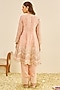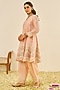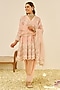 Sheetal Batra presents an off-rose short kalidar anarkali in chanderi silk base with a broad deep v-neckline and parsi gara embroidery. It is paired with bemberg satin dogri salwar pants and a silk organza scalloped dupatta. Accentuate with statement earrings and heels for a festive occasion, engagement or sangeet ceremony.