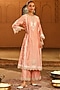 Sheetal Batra features a mesmerizing Off-Rose A-line Kurta Set that captivates with its elegance. The eye-catching kurta is crafted in pure silk chanderi with kashmiri tilla and parsi gara embroidery, including three-fourth sleeves, basra moti, placket and scalloped detailing. It is paired with palazzo pants and a silk organza dupatta. Accessorize the designer kurta set with statement earrings and heels for a festive look.