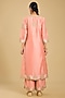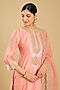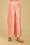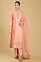 Featuring an off-rose A-line kurta in pure silk chanderi base, adorned with scalloped detailing, basra moti embellishments, kashmiri tilla, and parsi gara embroidery. It is paired with palazzo pants and a silk organza dupatta. Accessorise the designer kurta set with statement earrings and heels for a festive, elegant look.