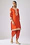 Featuring an orange kurta in chanderi silk base with kashmiri tilla embroidery and a mandarin collar. It is paired with bamberg satin dhoti pants. Style this with minimal jewellery and heels for a festive occasion or sangeet ceremonies.