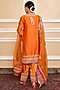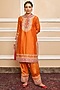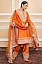 Featuring a orange kurta in silk chanderi and bamberg satin base with kashmiri tilla embroidery. It is paired with matching salwar pants and an organza dupatta.
