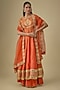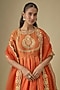 Featuring an orange kalidar anarkali in pure silk chanderi base with gota patti, dabka and zardosi embroidery. It is paired with a skirt and a silk organza dupatta. Accentuate it with jhumkas and embellished juttis for a wedding ceremony, festive celebration or traditional gathering.