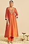 Orange Pure Upada Silk Sequins Embroidered A-Line Kaftan Set
