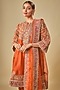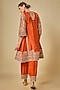 Featuring an orange choga kurta in silk chanderi base with bell sleeves, kirandori, dabka and zardosi embroidery. It is paired with silk embroidered salwar pants and a silk organza dupatta. Accentuate it with statement jewellery and heels for a festive occasion, wedding or engagement ceremony.