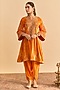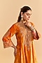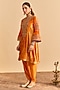 Orange Velvet Silk Embroidered A-Line Kurta Set