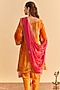 Sheetal Batra presents an orange A-line kurta crafted in velvet silk base with sequins, pearls and aari tilla embroidery. It is paired with tulip dhoti pants. Accentuate the look with ethnic earrings, an embellished potli bag and wedges for perfect festive gatherings, wedding functions or cultural celebrations.