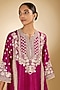 Featuring a pink choga kurta in chanderi silk base with tilla, gota and parsi gara embroidery. It is paired with bemberg satin salwar pants. Accentuate it with statement earrings and heels for festive occasions.