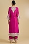 Featuring a pink A-line kurta in pure silk chanderi base with parsi gara, moti, tilla and gota embroidery. It is paired with palazzo pants and a silk organza dupatta. Accentuate it with dangler earrings and heels for a festive occasion or sangeet ceremony.