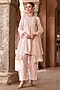 Sheetal Batra presents a pink A-line kurta crafted in silk chanderi, adorned with delicate parsi gara, sequins, and pearl embroidery. It is paired with straight pants and a silk organza dupatta, creating a light and festive silhouette. Style it with kundan polki jewellery, a potli bag, and block heels for sangeet, or celebratory occasions.
