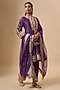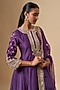 Featuring a purple short kalidar anarkali in chanderi silk base with kiran dori and sitara work, including zero neck, placket and three quarter bell sleeves. It is paired with bemberg satin dogri salwar pants and a silk organza dupatta. Accentuate it with statement jewellery and heels for a modern regal touch,ideal for festive occasions or wedding ceremonies.