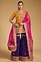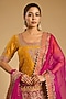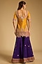 Featuring a yellow kurta in chanderi base with a broad deep scoop neckline and kiran dori embroidery. It is paired with purple georgette gharara pants and a silk organza dupatta. Accentuate it with zircon jewellery and block heels for a wedding, sangeet or haldi ceremony.
