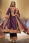 Sheetal Batra features a purple A-line kurta in silk chanderi base with a zero-neckline, bell-sleeves, dabka, and zardozi embroidery. It is paired with palazzo pants and a silk organza dupatta. Accentuate with polki jewellery and heels for any festive occasion to ace the royal look.