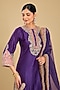Featuring a purple kurta in pure silk chanderi base, adorned with quarter bell sleeves and kashmiri tilla embroidery. It is paired with a bamberg satin salwar and a silk organza dupatta. The ensemble is highlighted with applique and gota. It is finished with a chanderi silk banarsi fabric and gota. Style it with polki jewellery, an embellished clutch and heels for a wedding or engagement ceremony.