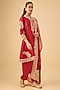 Featuring a red kurta in chanderi silk base with kashmiri tilla embroidery and a mandarin collar detail. It is paired with bamberg satin salwar pants and a silk organza dupatta. Accentuate it with statement jewellery and embellished heels for a festive occasion or weddings.