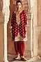 Sheetal Batra presents a mesmerizing deep red A-line kurta in pure silk banarasi base with bell sleeves, pearl, sequins, kashmiri tilla and gota patti embroidery. It is paired with bamberg satin salwar pants and a silk organza dupatta. Style it with kundan polki earrings, a braided hairstyle and wedges, ideal for sangeet ceremonies or colorful festive gatherings.
