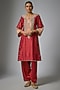 Red Silk Chanderi Kashmiri Tilla Embroidered Choga Kurta Set