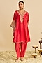 Red Upada Silk Gota Embroidered Kurta Set