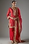 Red Upada Silk Kashmiri Tilla Embroidered & Bandhej Printed Kurta Set