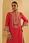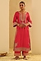 Red Upada Silk Pearl Embellished Bandhej Long A-Line Kurta Set